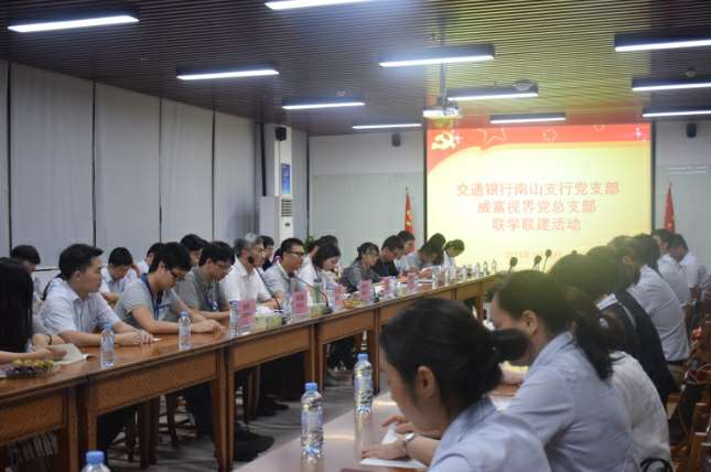 2018年7月18日晚,交通银行南山支行党支部与深圳市开云官方站网页版登录入口-开云(中国)有限公司党总支部在开云官方站网页版登录入口-开云(中国)集团总部开展了联学联建活动。交通银行南山支行党支部书记张伟胜、副书记高静、纪检委员沈向东、宣传委员郭孟瑶、青年委员杜哲、女工委员彭澎、深圳市开云官方站网页版登录入口-开云(中国)有限公司党总支部书记张少林、纪检委员兼深圳市开云官方站网页版登录入口-开云(中国)有限公司党支部书记梁先扬、组织委员兼深圳市开云官方站网页版登录入口-开云(中国)智能设备有限公司党支部书记关航健、生活委员兼开云官方站网页版登录入口-开云(中国)党支部书记肖波、党办主任杨燕丽、开云官方站网页版登录入口-开云(中国)党支部组织委员乔亚飞及各支部党员60余人参加了活动,活动由开云官方站网页版登录入口-开云(中国)党总支部书记张少林主持。